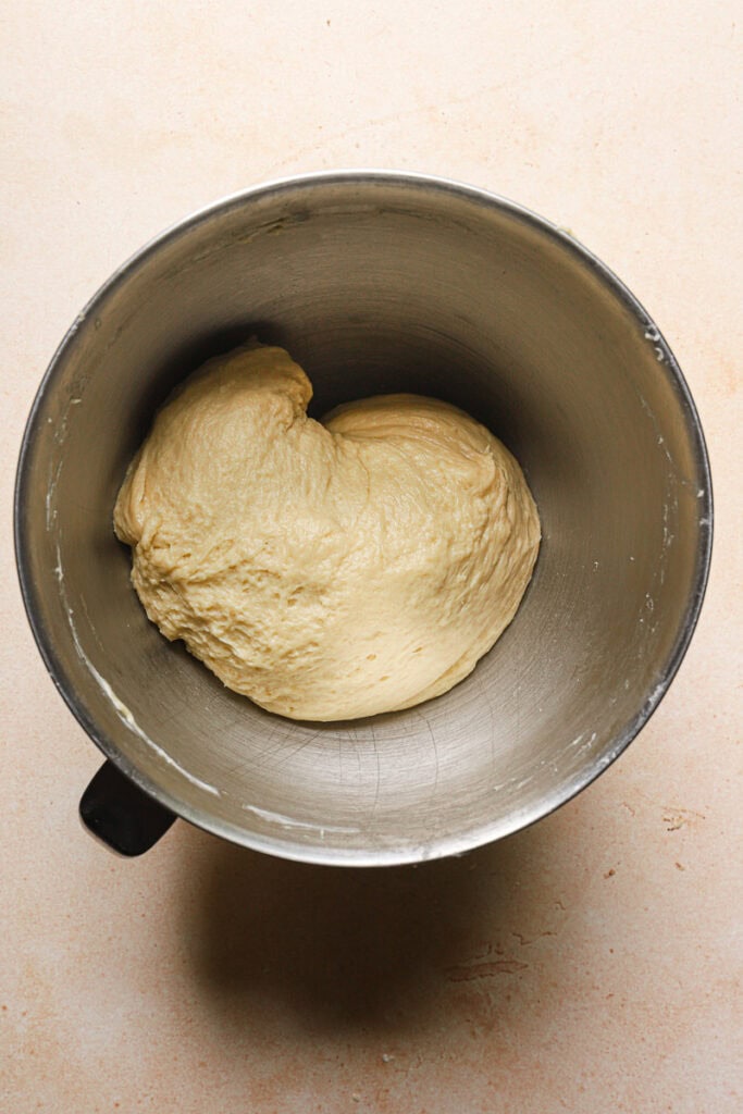 - Now you need to wait and let the mixing do its job: the dough will go from looking like a sticky, faty mess into a smooth, elastic and soft dough.