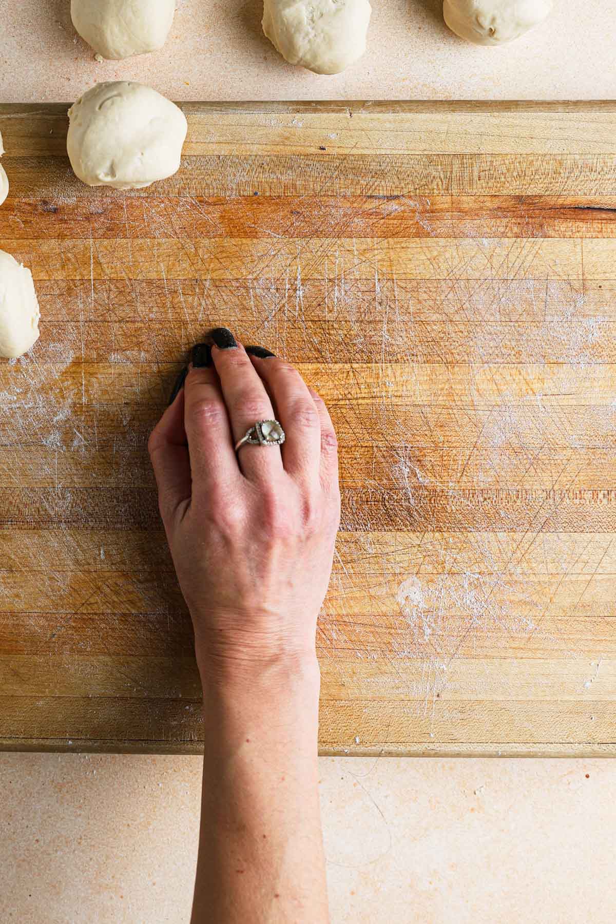 - Unwrap one portion of the dough, and place it over a clean surface with some flour.