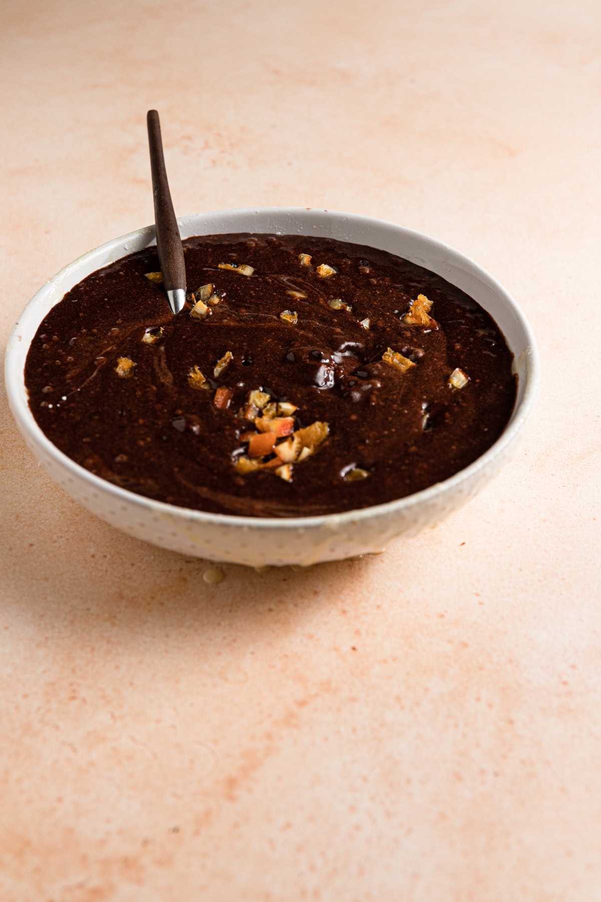 - Warm Olive oil. My secret ingredient in this recipe. Olive oil rounds up the orange and chocolate flavors and it adds another layer of moistness we won’t get when we use butter. Mixing it warm into the bloomed chocolate is the best way to infused the flavors and add another layer of unique flavor.