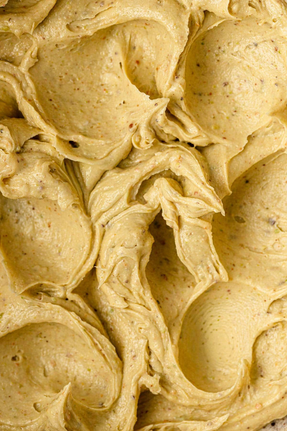 But I promise you its simplicity, is not at the cost of flavor, or texture. This recipe is silky smooth to easily to spread and also stable enough to pipe without losing it definition. And above all, it is loaded with pistachio flavor, all from natural non-artificial ingredients.