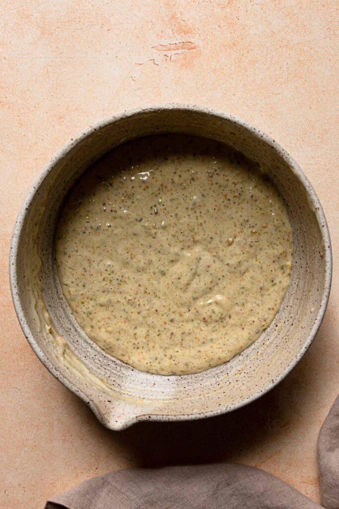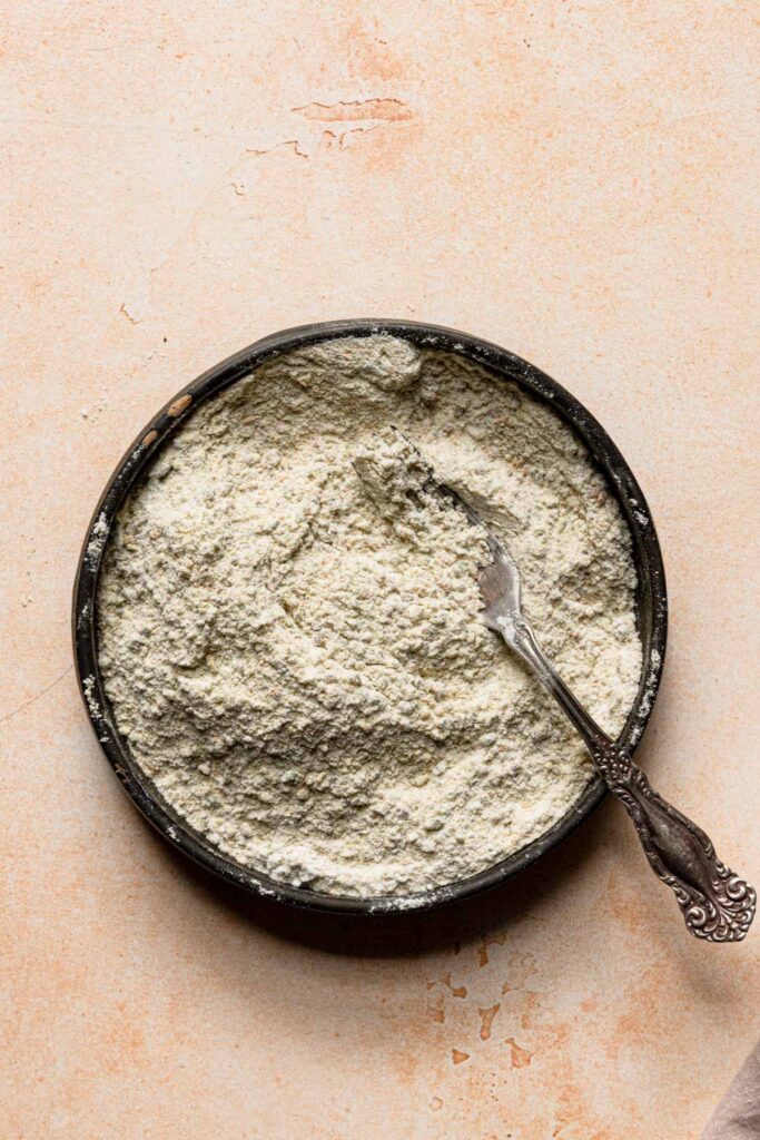 - Sift the flour then mix it with the baking powder and gound pistachios.