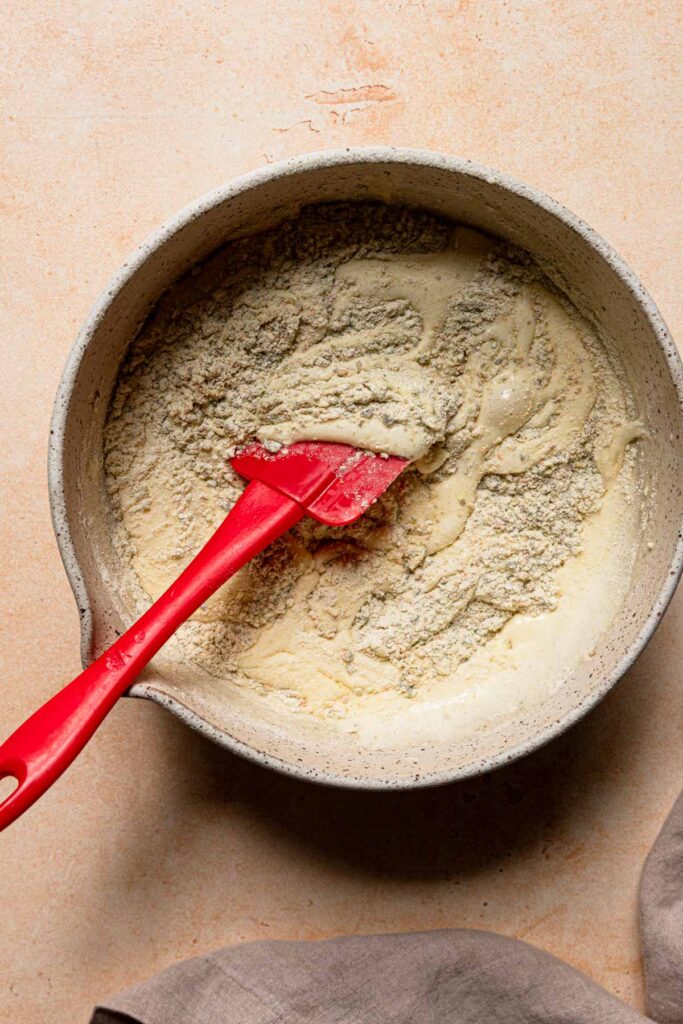 - Process the pistachios with 1 tablespoon of the flour into a finely ground mixture. Pay attention and stay close, so it won’t turn into a paste.