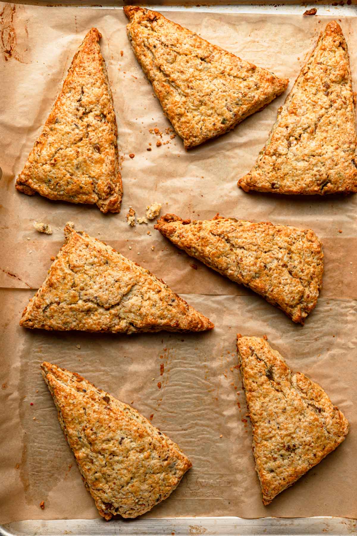 I have a bit of an obsession with breakfast pastries: my perfect day begins with a warm cup of coffee and a pecan scone (or Pistachio Croissant), and ends with a soothing mint tea and a few Pistachio Shortbread cookies. And I am so excited about this recipe, because it is a hybrid of tender, buttery scones and crisp, buttery shortbread.