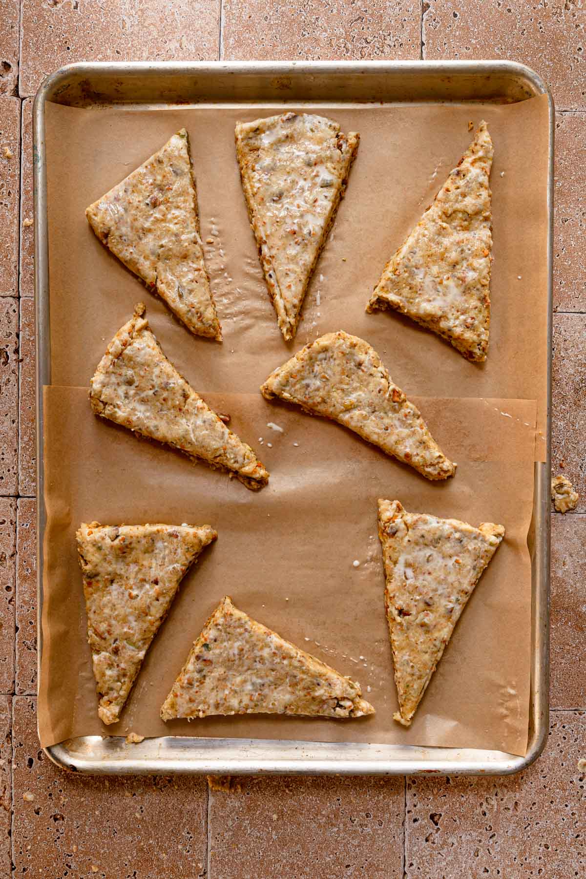 If you prefer you can shape it into a 12-inch circle (over the lined pan) and cut it. For visual reference check out how I shapped these Cream Cheese Orange Scones.